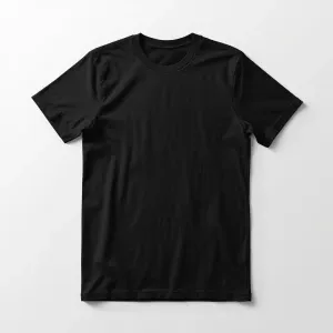 «Produce an elegant flat lay image featuring a basic black t-shir...»