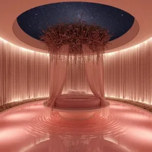 «Generate an image of the Roselight Room: Picture a serene oasis...»