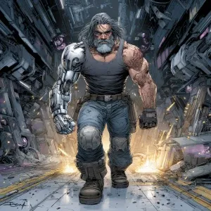 «his entire right arm chrome silver, like Liquid Metal perfect mu...»