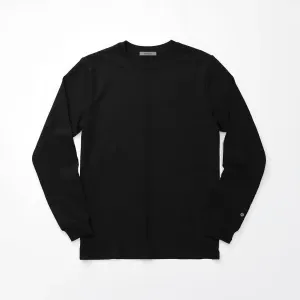 «Produce an elegant flat lay image featuring a basic black longsl...»