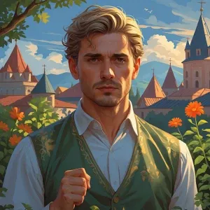 «A high elf mage, illustrated in RPG fantasy book style, standing...»