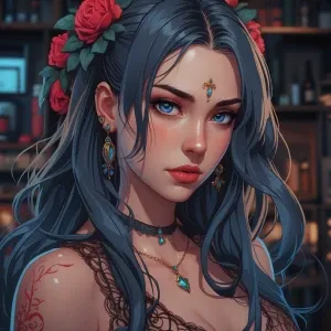 «Emilis, a stylish young woman with short hair and edgy fashion,...»