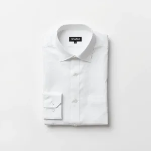 «Produce an elegant flat lay image featuring a basic white shirt...»