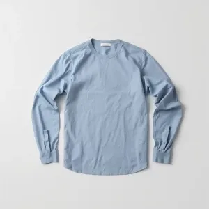 «Produce an elegant flat lay image featuring a basic lightblue sh...»