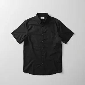«Produce an elegant flat lay image featuring a basic black shirt...»