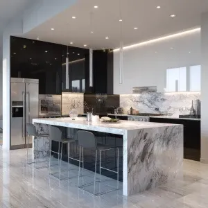 «“Ultra-realistic photo of a Scandinavian kitchen with matte whit...»
