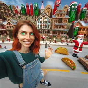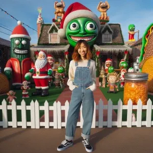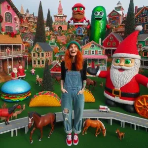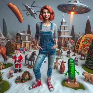 «Photorealistic photo. Whimsical Christmas scene A happy woman...»