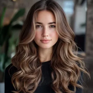 «a woman, look to the camera, close up photo, Long Wavy Hair Hair...»