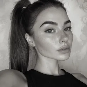 «a woman, look to the camera, close up photo, High pony tail hair...»