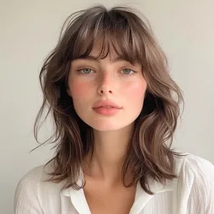 «a woman, look to the camera, close up photo, curtain bangs, Soft...»