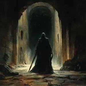 «Generate an image of a dark lord's soul materializing as a tumul...»
