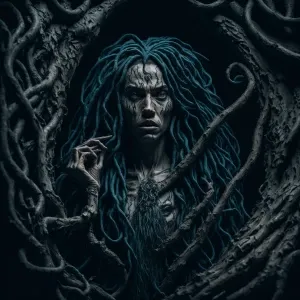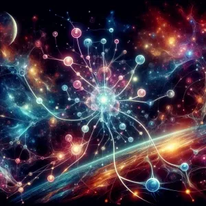 «In the heart of a shimmering cybernetic world, a majestic biolum...»