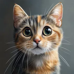 «A realistic depiction of an adorable cat gazing intently into th...»