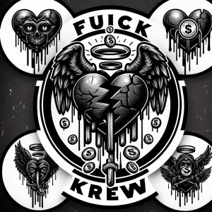 Circular logos for 'FUCK LOVE KREW' with black, brok...»