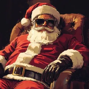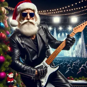 «A whimsical scene depicting a blonde man at the North Pole gazin...»