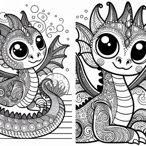 «Create a coloring page design featuring a dragon with large eyes...»
