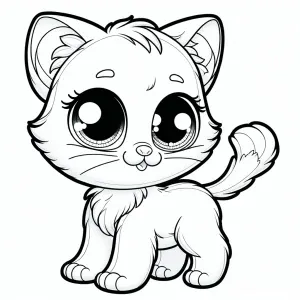 «Create a coloring page design featuring a kitten with large eyes...»