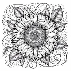 «Create a coloring page design featuring a large sunflower, suita...»