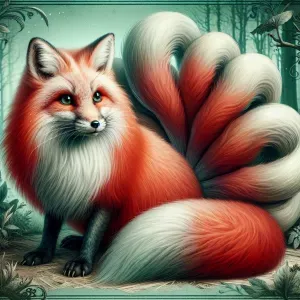 «Create an image of a nine-tailed fox displaying realistic pregna...»