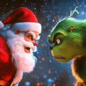 «Generate a picture with Santa Claus on the left and the Grinch o...»
