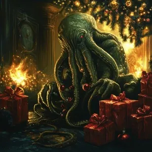 «H R Giger inspired image of Cthulhu celebrating Christmas»