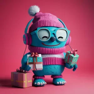 «ChillGuy, a playful and inventive Christmas-themed blue monster...»