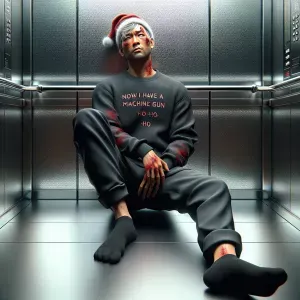 «Hyperrealistic, An old farm, heavy farmer stsnding next to a gig...»