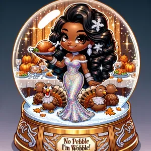 «A vibrant and humorous Thanksgiving-themed snow globe featuring...»