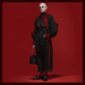 «Create an image of a stylish vampire wearing Balenciaga clothing...»