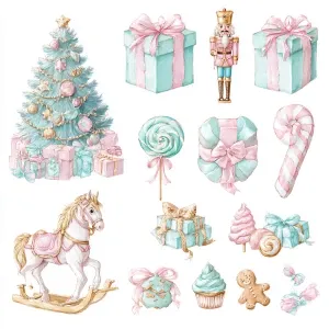 «A detailed watercolor illustration of a whimsical pastel Christm...»