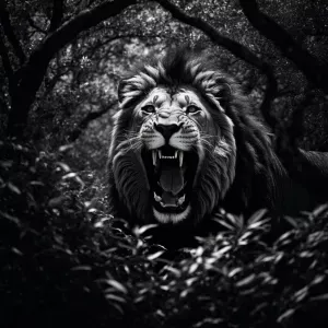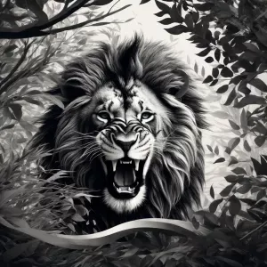 «Create a black and white vector illustration depicting a roaring...»