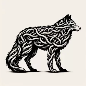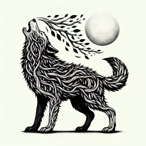 «Create a black and white vector illustration featuring a wolf wh...»