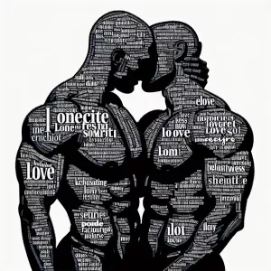 «A silhouette of a two muscle men in an intimate embrace, created...»