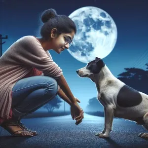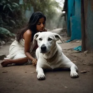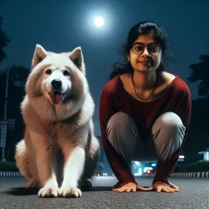 «Bijal 30 yr old without glasses bending leg knees with dog khali...»