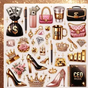 «Design a high-resolution sticker sheet themed around "Girl Boss,...»