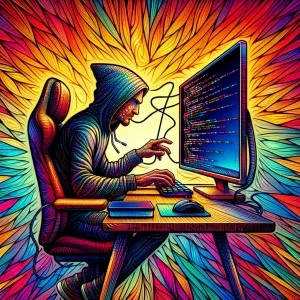 «a programmer with one PC and one Monitor. Colorfully.»