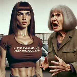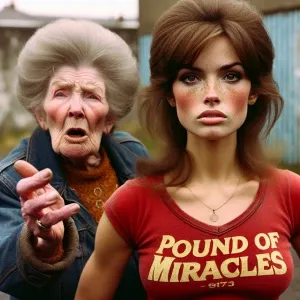 «Create a realistic film photograph from 1973 depicting an irate...»