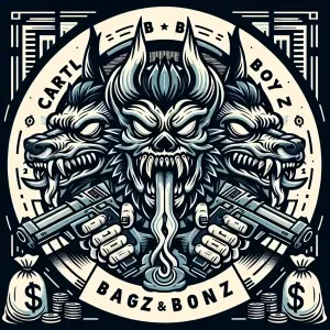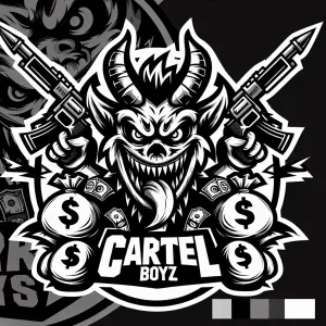 «Create a bold logo featuring a menacing creature with sharp feat...»