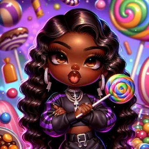 «A high-quality glossy painted style image of a sassy, melanin-ri...»