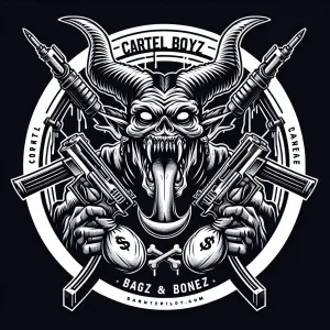 «Create a bold logo featuring a menacing creature with sharp feat...»
