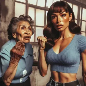 «Refine a 1973-style color film photograph depicting an irate eld...»