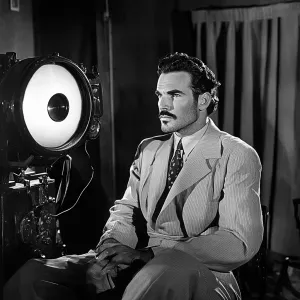 «A handsome actor in the 1950s smiling»