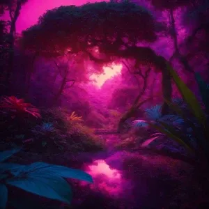 «Step into a psychedelic jungle, where the foliage is a vibrant m...»