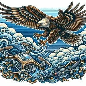 «Soaring eagle next to a drone»