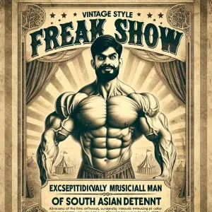 «Create a vintage-style Freak Show poster featuring the Strong wo...»