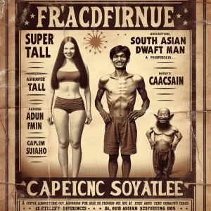 «Create a vintage-style Freak Show poster featuring the Super tal...»