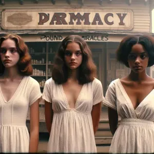 «Create a color film photograph from 1962 of three beautiful, ext...»