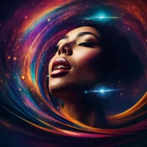 «"Create a surreal and cosmic art piece depicting a human face mo...»