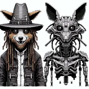 «A dazzling digital pet with luminous holographic fur and glowing...»