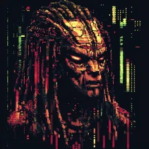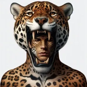 «Create a highly detailed, atmospheric image of a confident and a...»